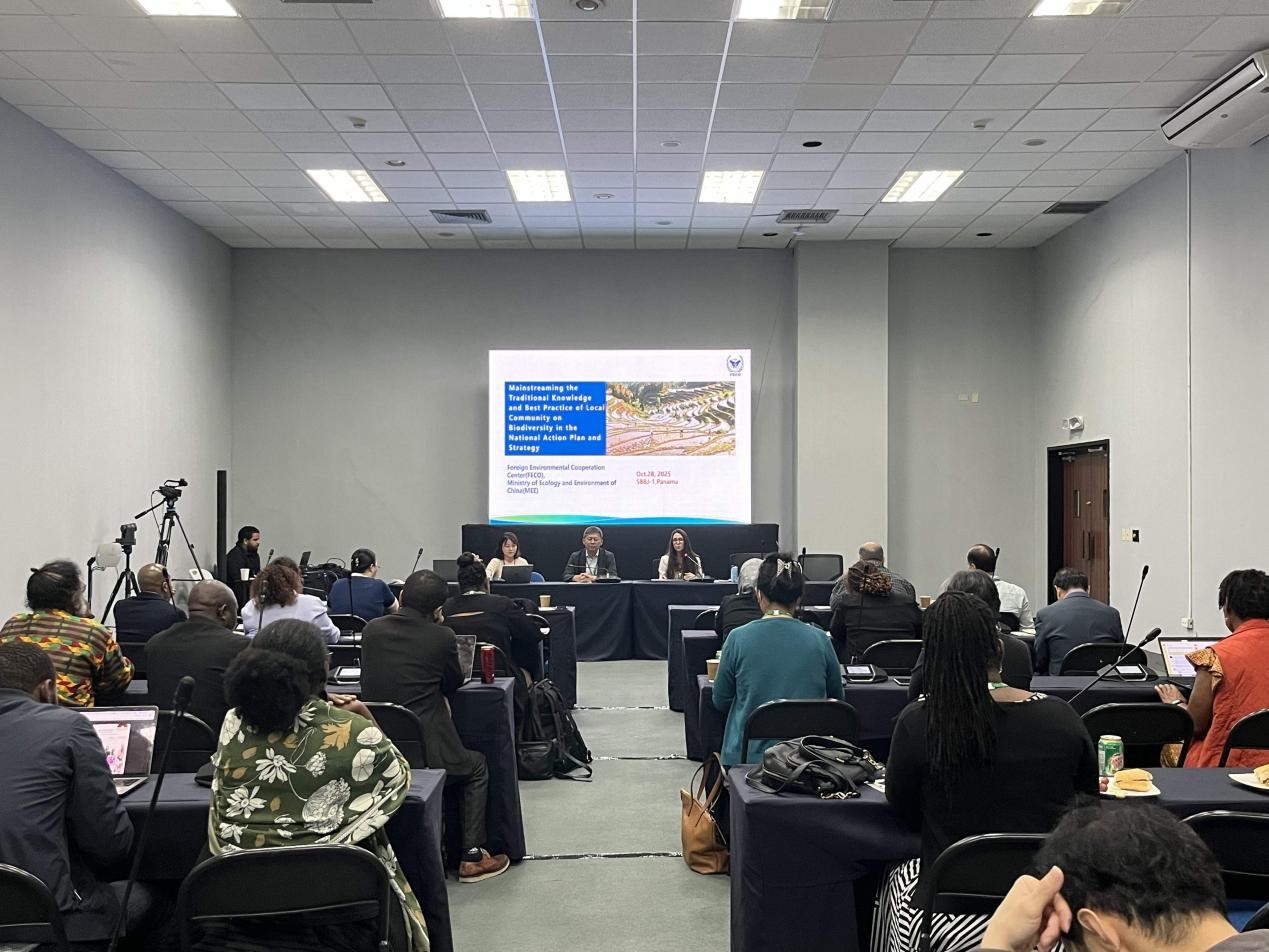 会议期间,中心还成功举办了“地方社区传统知识和最佳实践纳入国家生物多样性保护战略与行动计划”主题边会,生态环境部自然生态保护司张玉军司长参会并致辞,邀请到来自《公约》秘书处、约旦、肯尼亚、马拉维以及安提瓜和巴布达等代表进行案例分享和圆桌讨论,活动现场反响热烈,圆满取得预期成效。