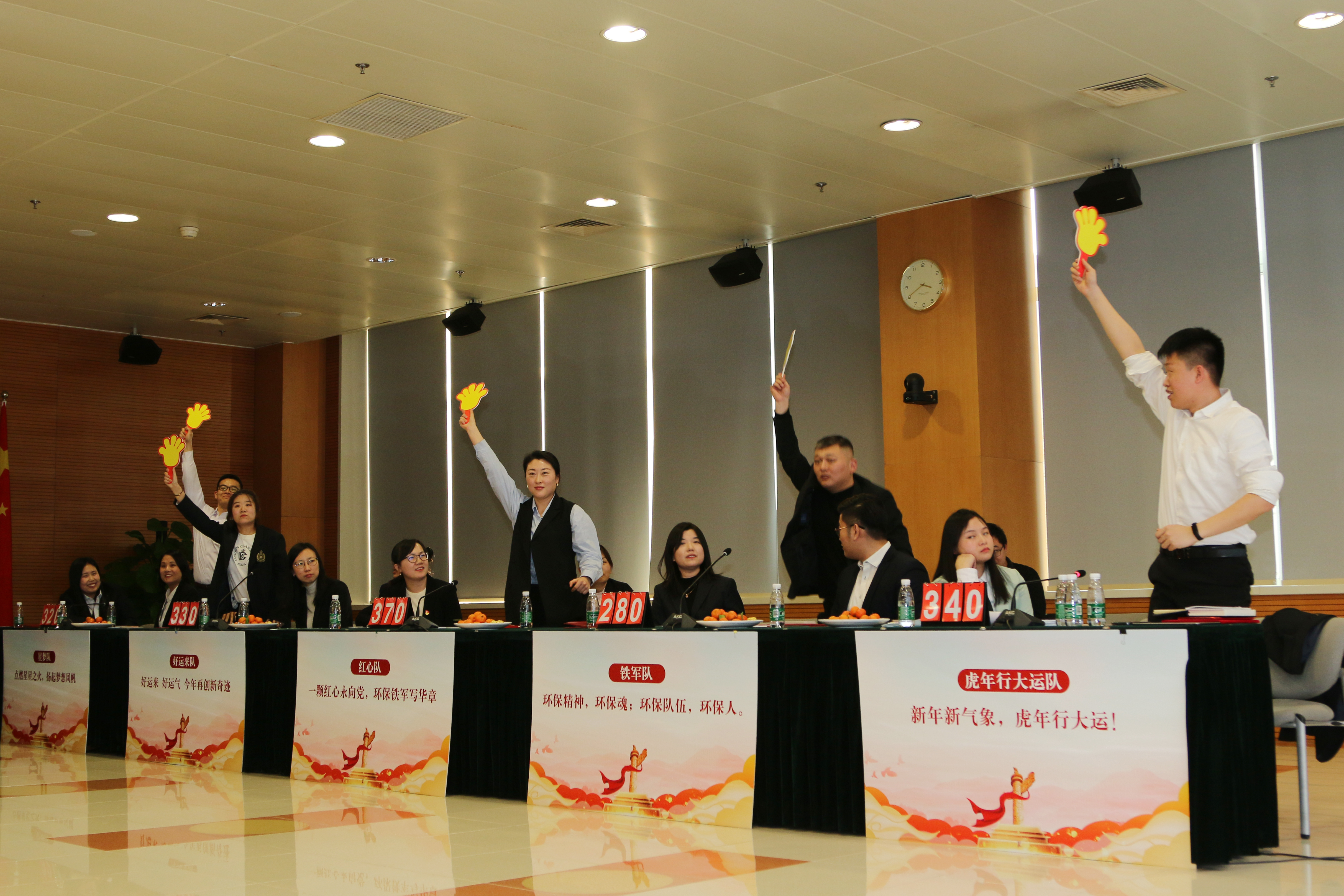 比赛前,翟桂英副主任宣读了中绿公司2021年度先进集体和优秀个人表彰名单,并与公司董事、监事为先进集体和优秀个人颁奖。随后开展的“党在我心中,双碳目标有我”知识竞赛,紧扣党史学习教育、十九届六中全会精神和“双碳”知识,参赛队伍积极主动、奋勇争先,竞赛在团结、紧张、严肃、活泼的气氛中圆满结束。最后,大家高唱《没有共产党就没有新中国》,将主题党日活动推向高潮。